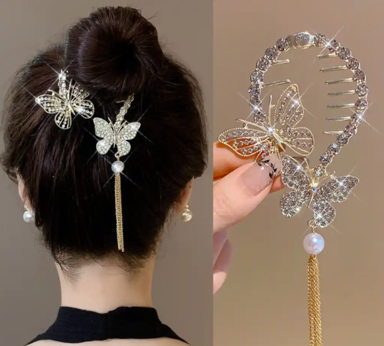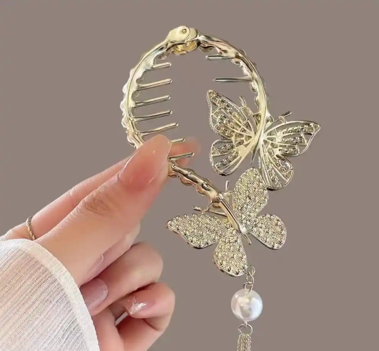 Metal Kelebek Taşlı Detaylı Yay Topuz Tokası